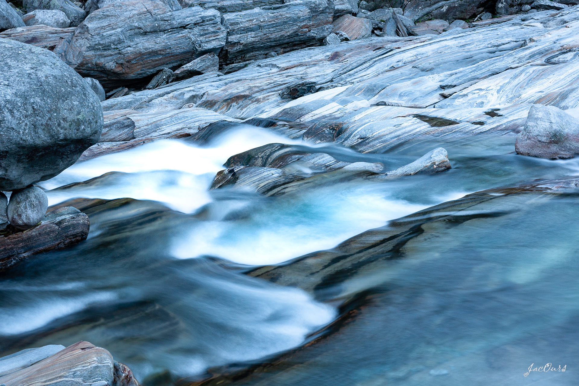 Long exposure photography on the river Verzasca (Ticino, Switzerland).